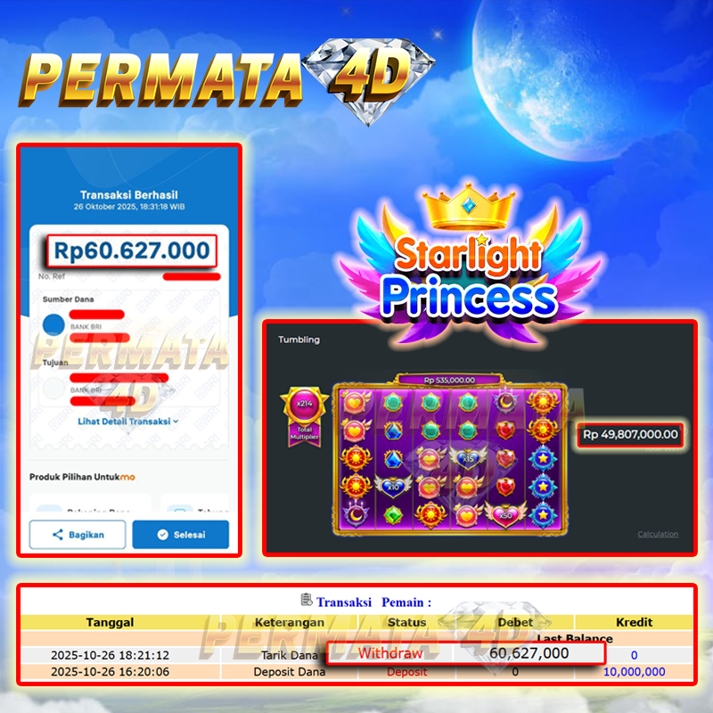 PERMATA4D JACKPOT STARLIGHT PRINCESS Rp. 44.000.000,- LUNAS