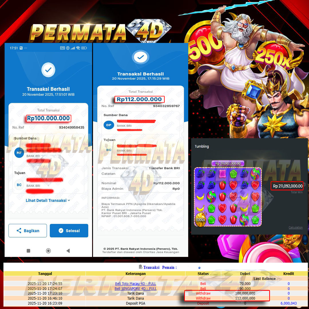 Selamat Kepada Member PERMATA4D MAHJONG WAYS User id NE******