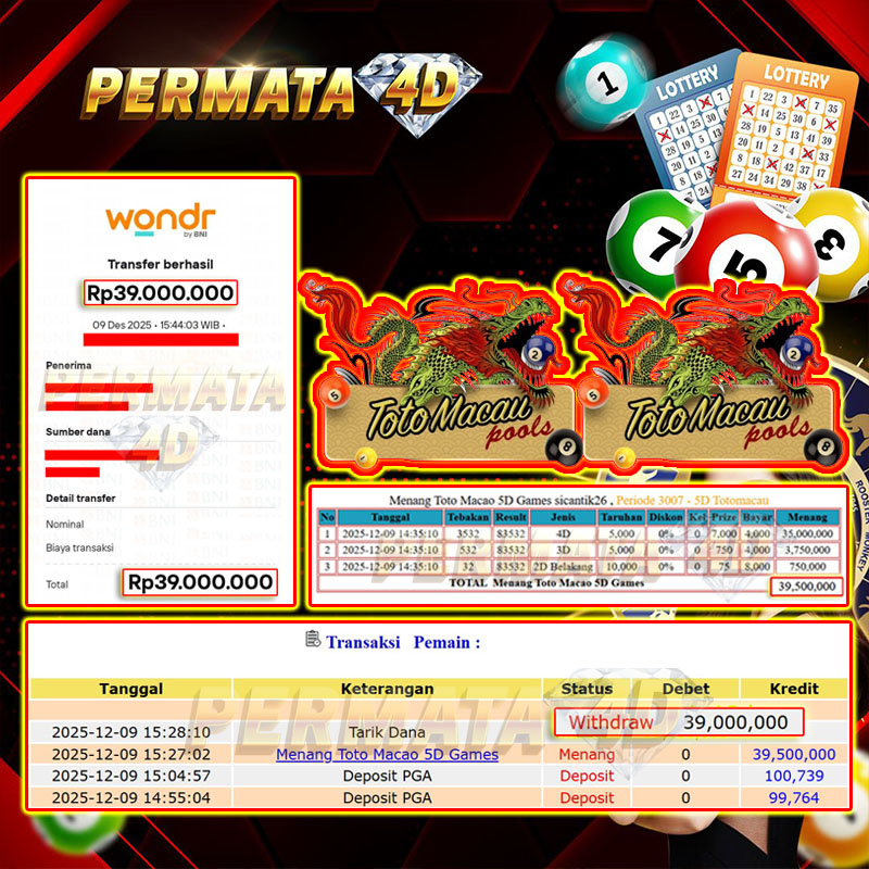 PERMATA4D JACKPOT TOTOMACAU5D Rp. 39.000.000,- LUNAS