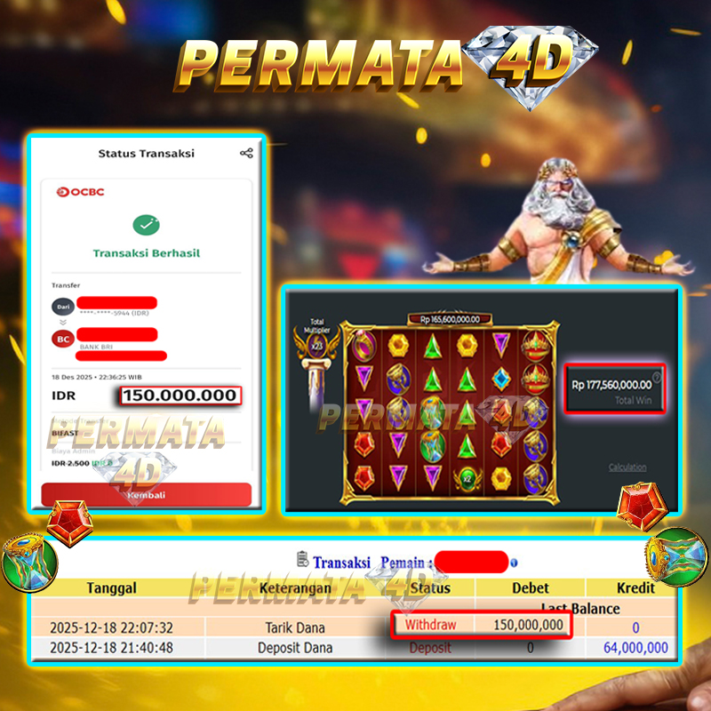 PERMATA4D JACKPOT GATES OF OLYMPUS 1000 Rp. 150.000.000,- LUNAS