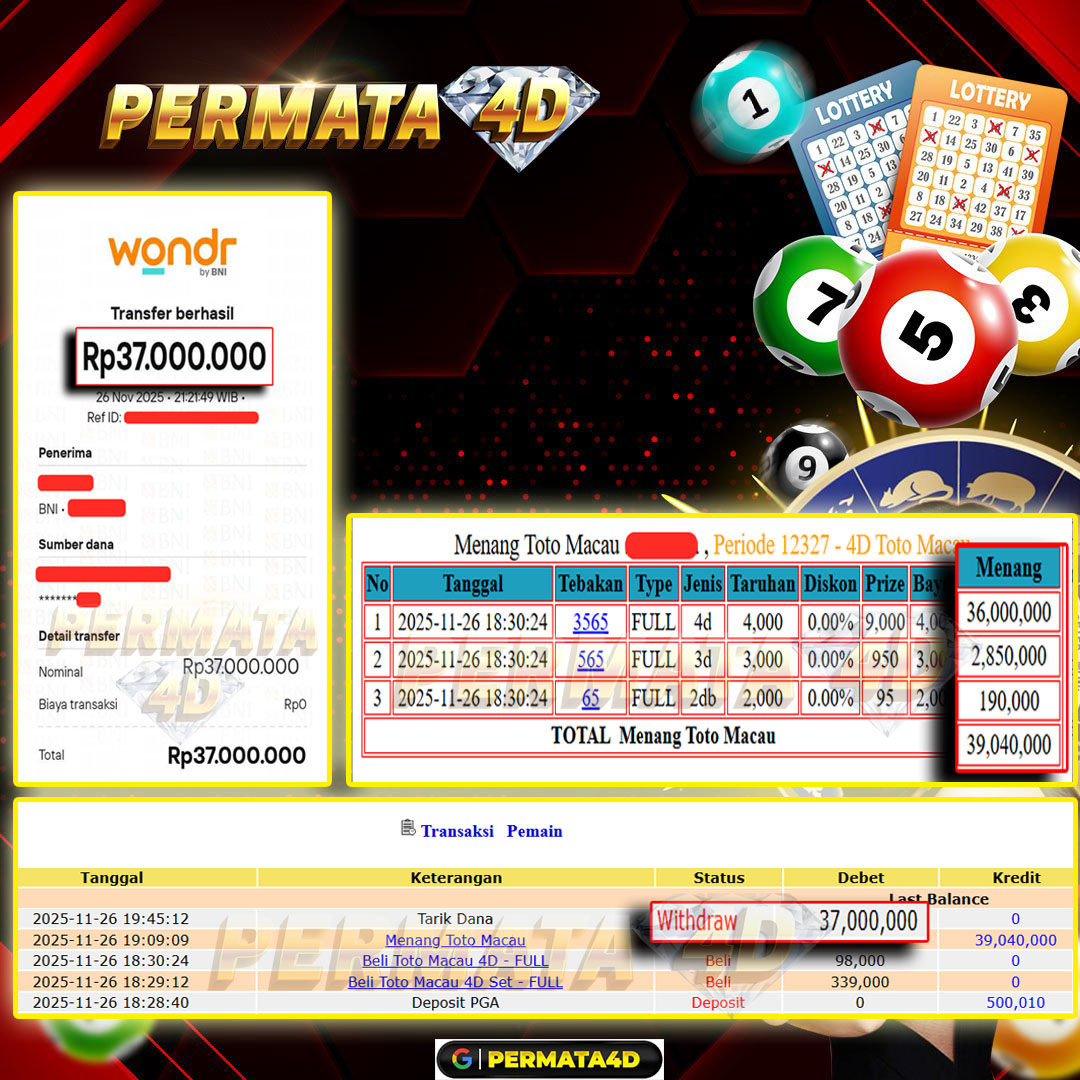 PERMATA4D JACKPOT TOTOMACAU4D Rp. 37.000.000,- LUNAS