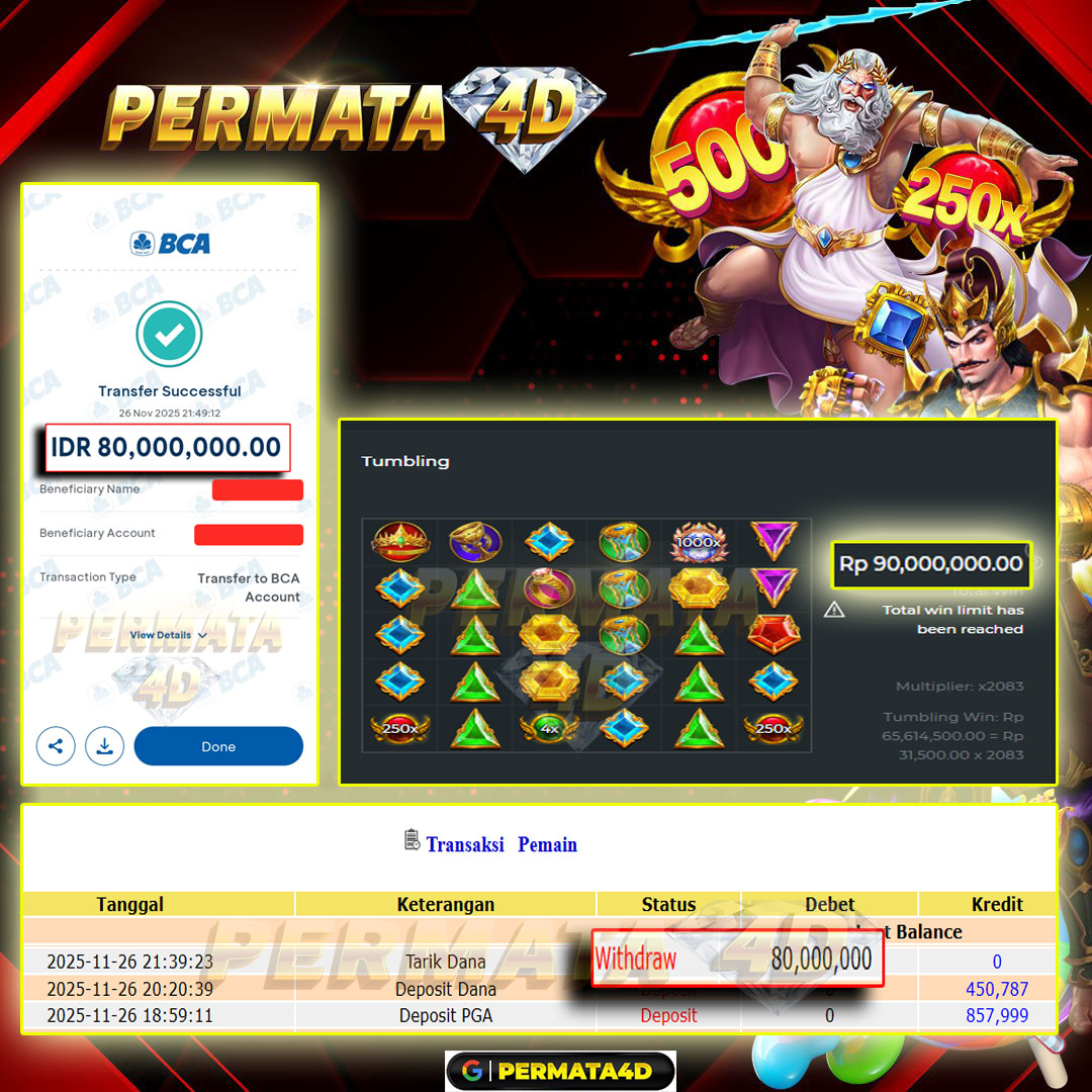 Selamat Kepada Member PERMATA4D GATES OF OLYMPUS SUPER SCATTER User id DE********