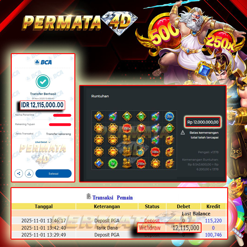 Selamat Kepada Member PERMATA4D GATES OF GATOT KACA 1000 User id BO********